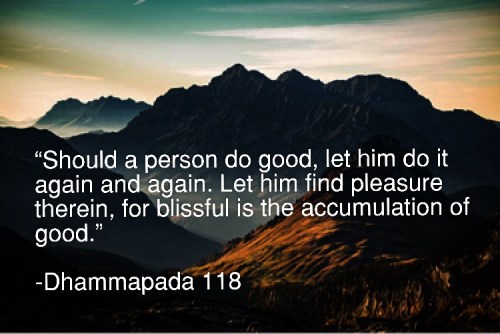 “Should a person do good, let him do it again and again. Let him find pleasure therein, for blissful is the accumulation of good.” The Buddha (Dhammapada, verse 118)