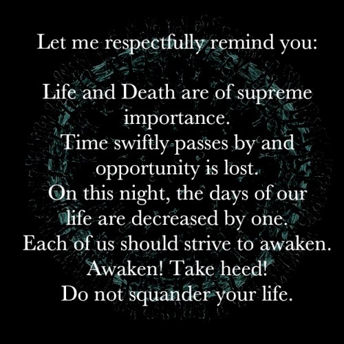 How fortunate you are to have the time to realize this truth so make haste now and practice.