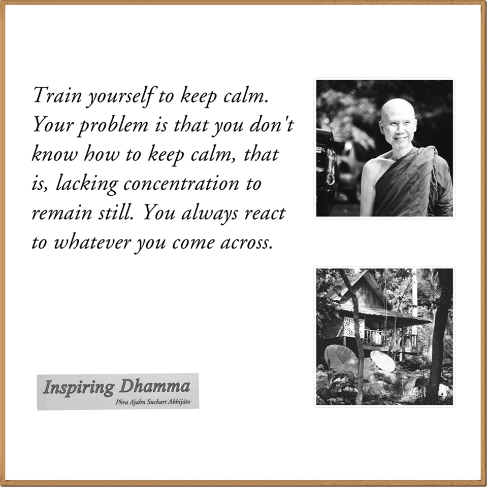 I found the quote above and it immediately struck me. Not solely for its affinity with the Roman Stoic focus on tranquility as the goal of stoic praxis but because it’s true. It’s Dhamma. And, although I knew somewhere that it was so, hearing it from a venerable ajahn gives me confidence that I need to practice being less reactive in all situations. That calm is a noble aim.