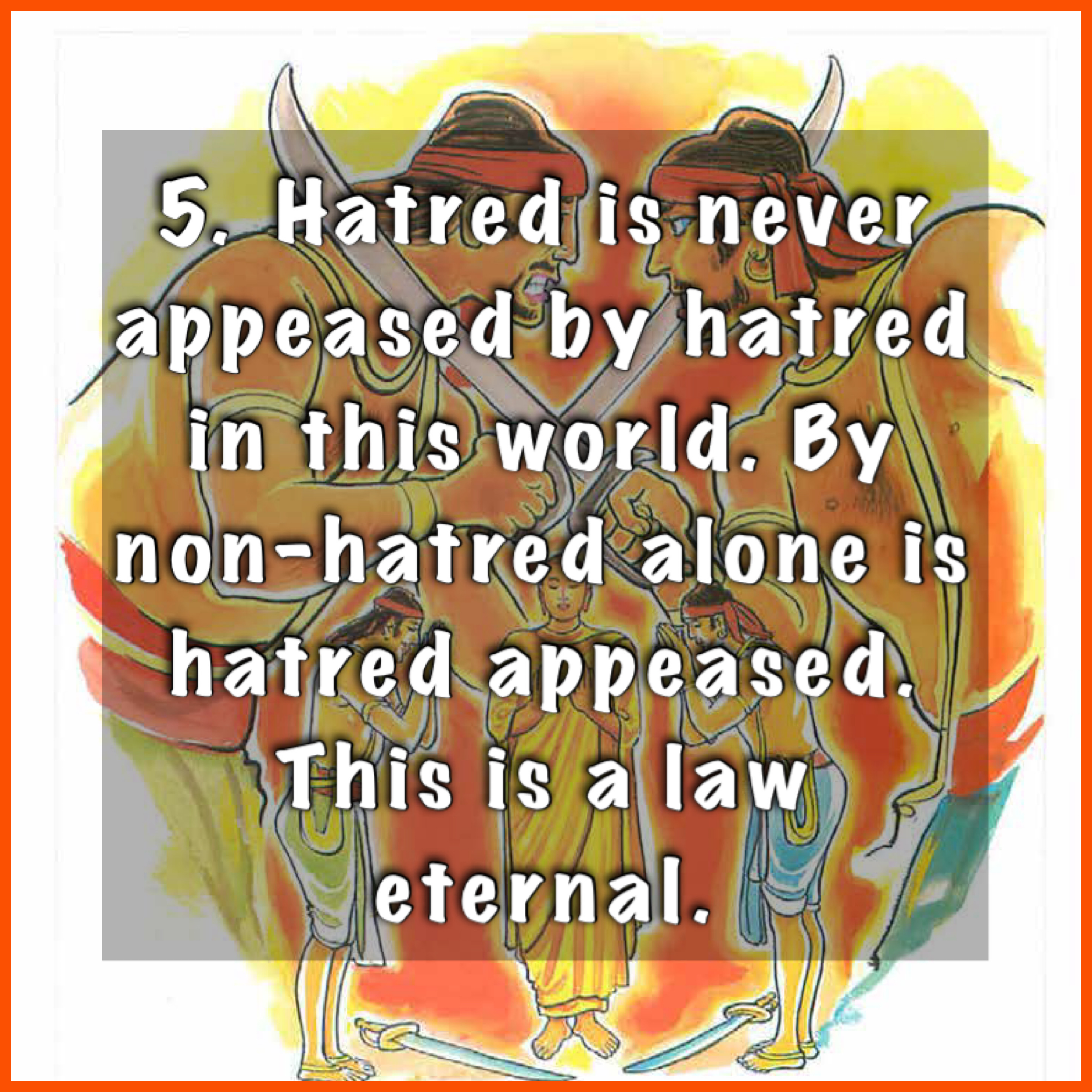 5. Hatred is never appeased by hatred in this world. By non-hatred alone is hatred appeased. This is a law eternal.