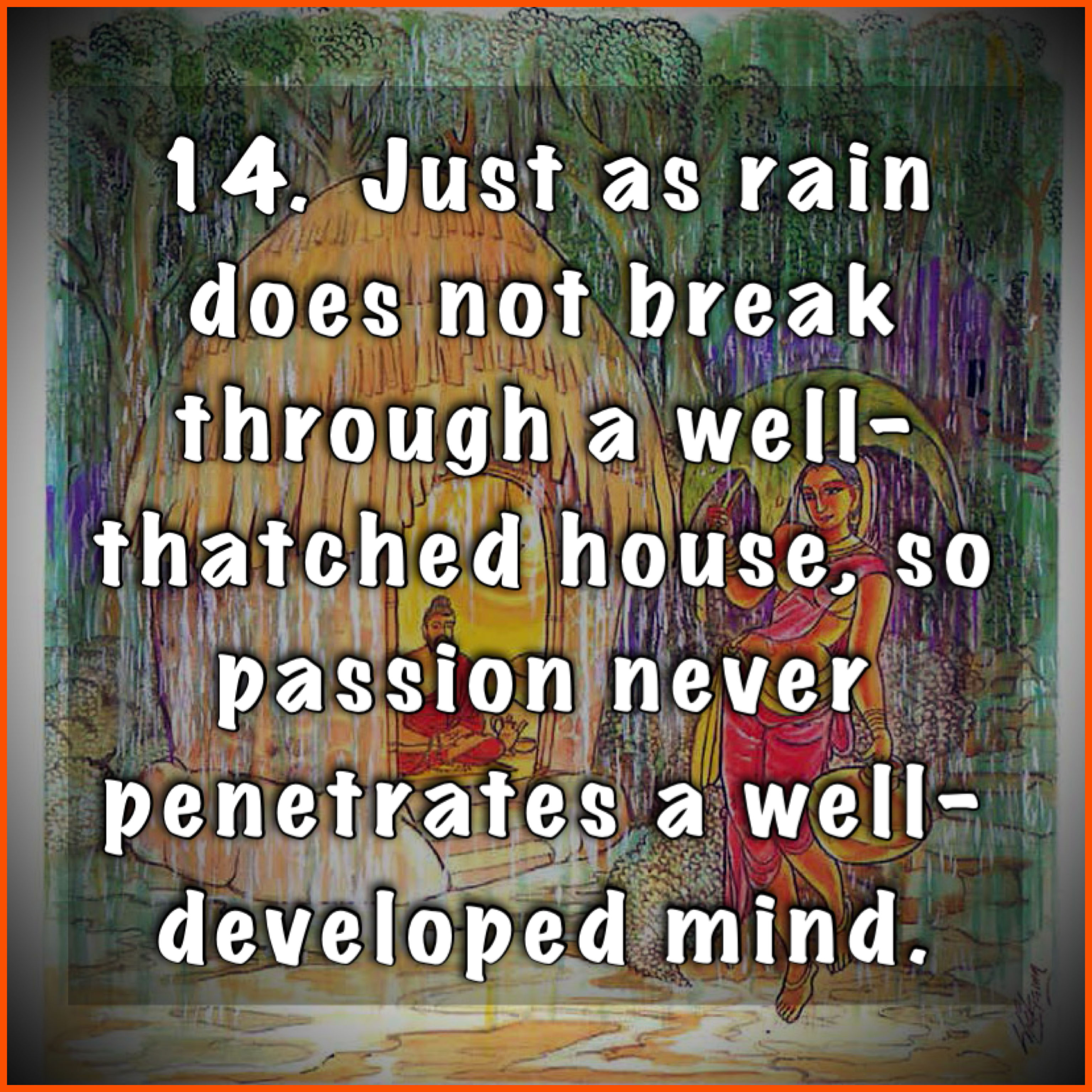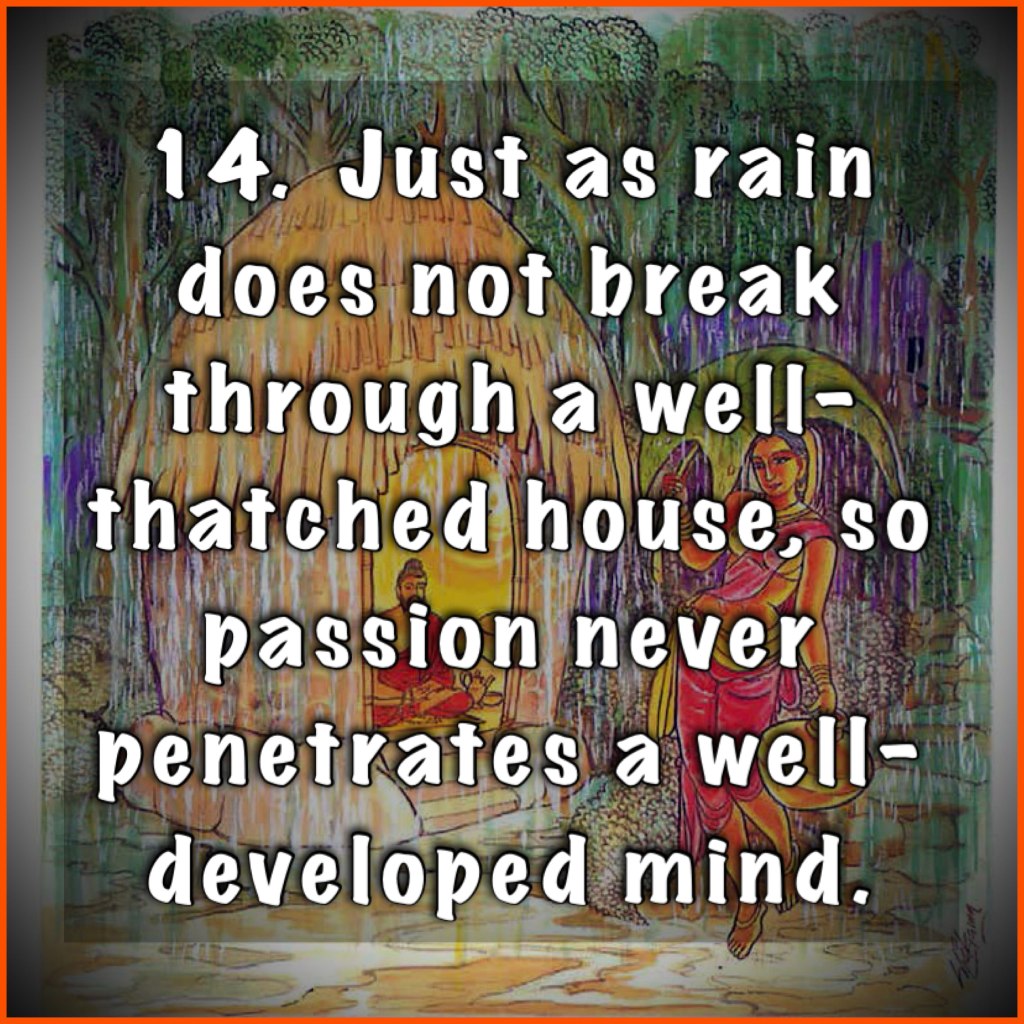 14. Just as rain does not break through a well-thatched house, so passion never penetrates a well-developed mind.