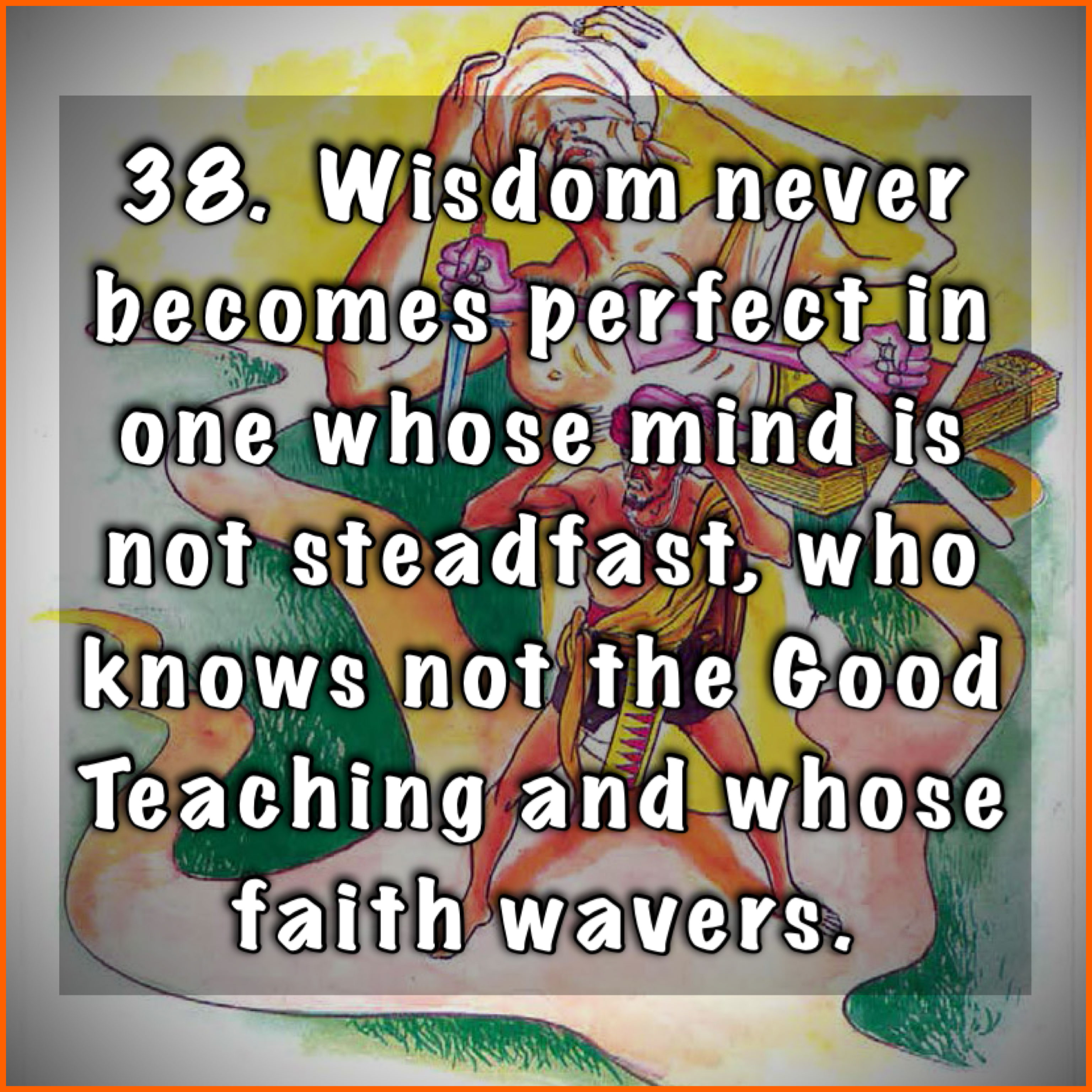 38. Wisdom never becomes perfect in one whose mind is not steadfast, who knows not the Good Teaching and whose faith wavers.